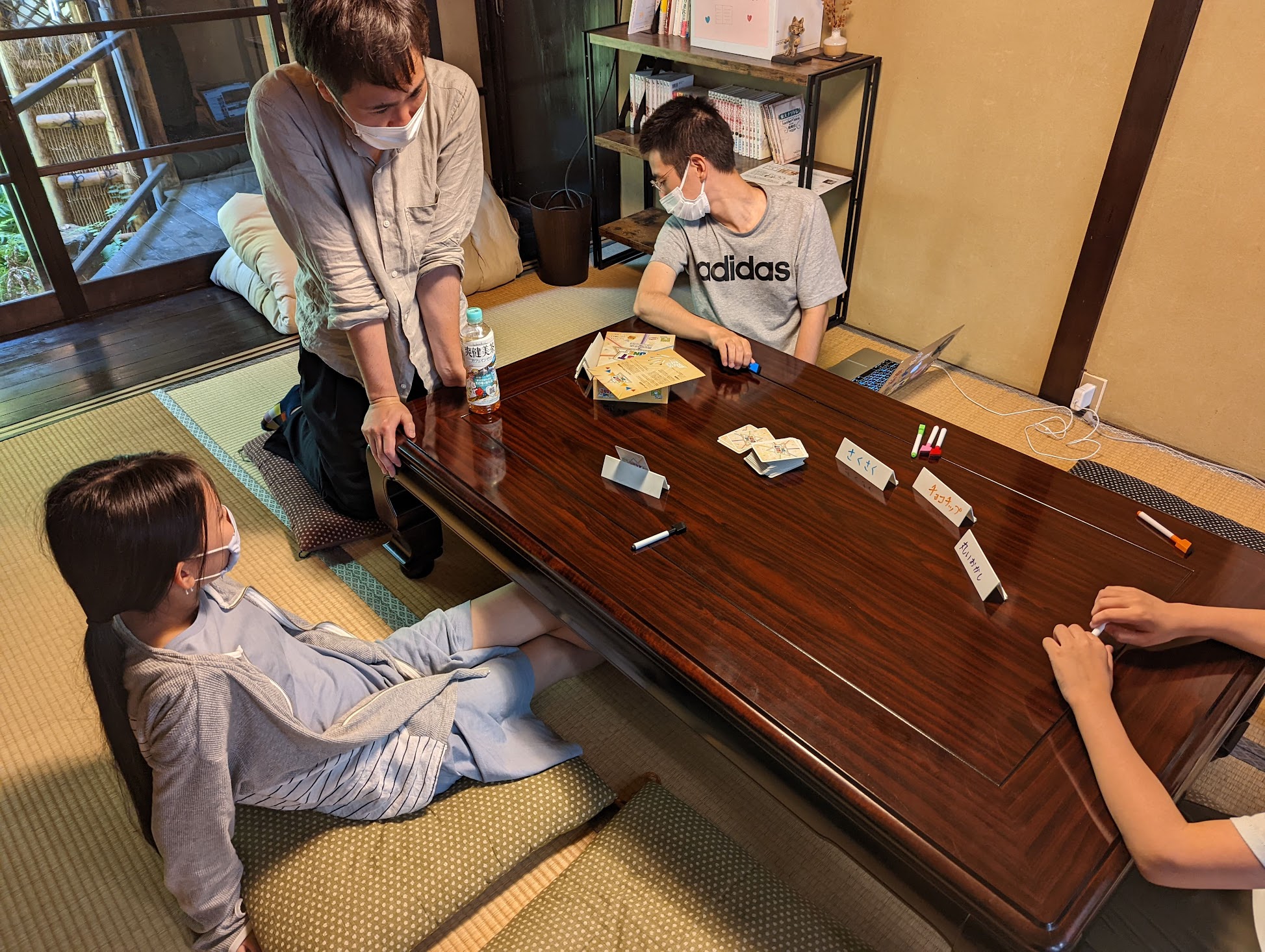 冷蔵庫に冷やして完成を待つ間は、みんなでボードゲーム。