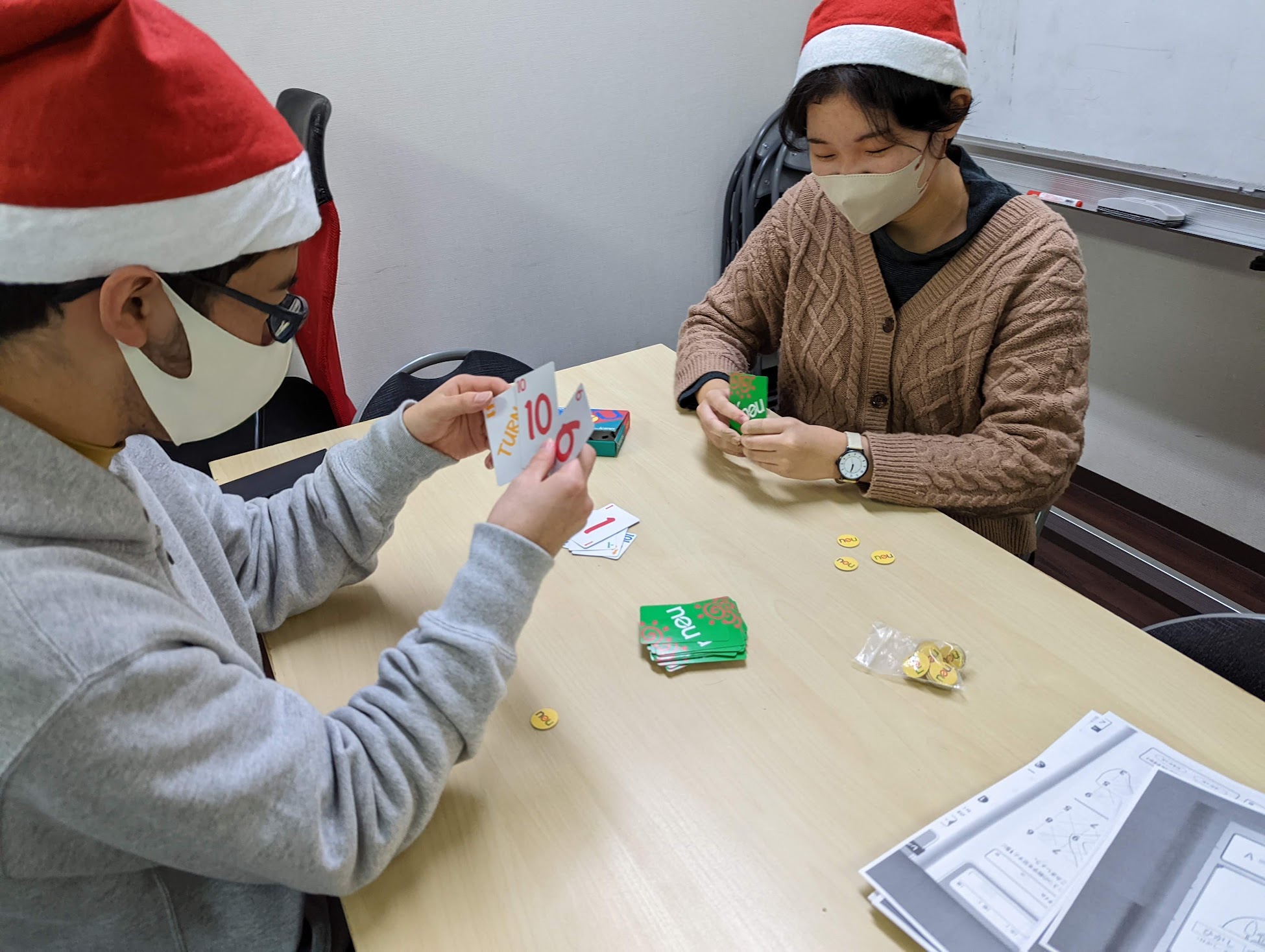 火曜日はサンタ帽子をかぶって一緒にボードゲームなどをして遊びました。