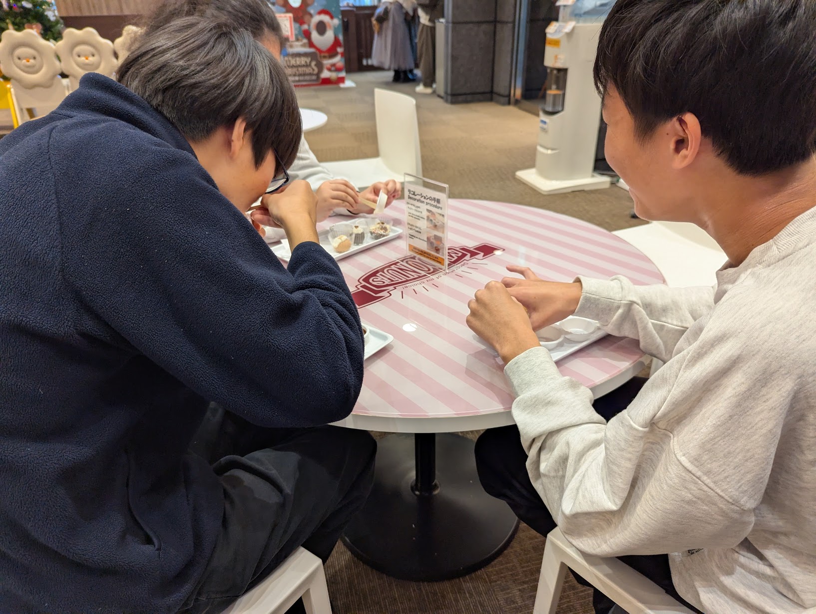 正直に言いますと、生徒たちは1時間もしないうちに飽きてしまうんじゃないかと思っていました。展示なんて中高生は見ないだろうと。ドーナツのトッピング体験をして、食べるものを食べたらすぐに帰りたくなるんじゃないかと。